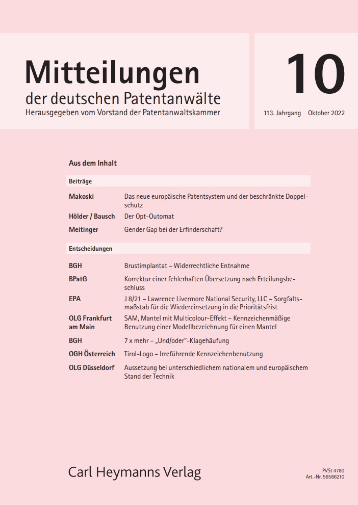 Dr. Meitinger beschreibt in der Juli/August-Ausgabe des Jahres 2021 die Gebrauchsmusterabzweigung im deutschen und europäischen Einspruchsverfahren.